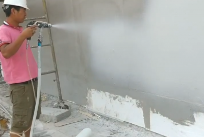 多功能噴涂機真石漆噴涂工地施工現場演示……